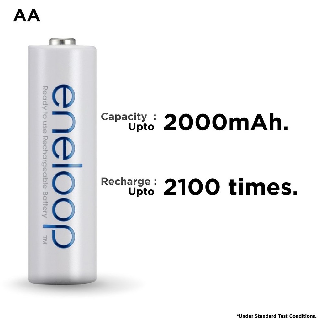 Pin 4 viên, thương hiệu Panasonic Eneloop chính hãngDung lượng 2000mAh, số lần nạp xả lên đến 2100 lần