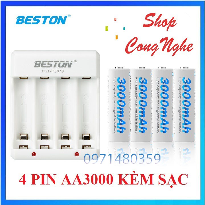 Combo 4 pin sạc AA3000, AA1200 kèm sạc hoặc pin riêng chính hãng BESTON cho máy ảnh, micro karaoke