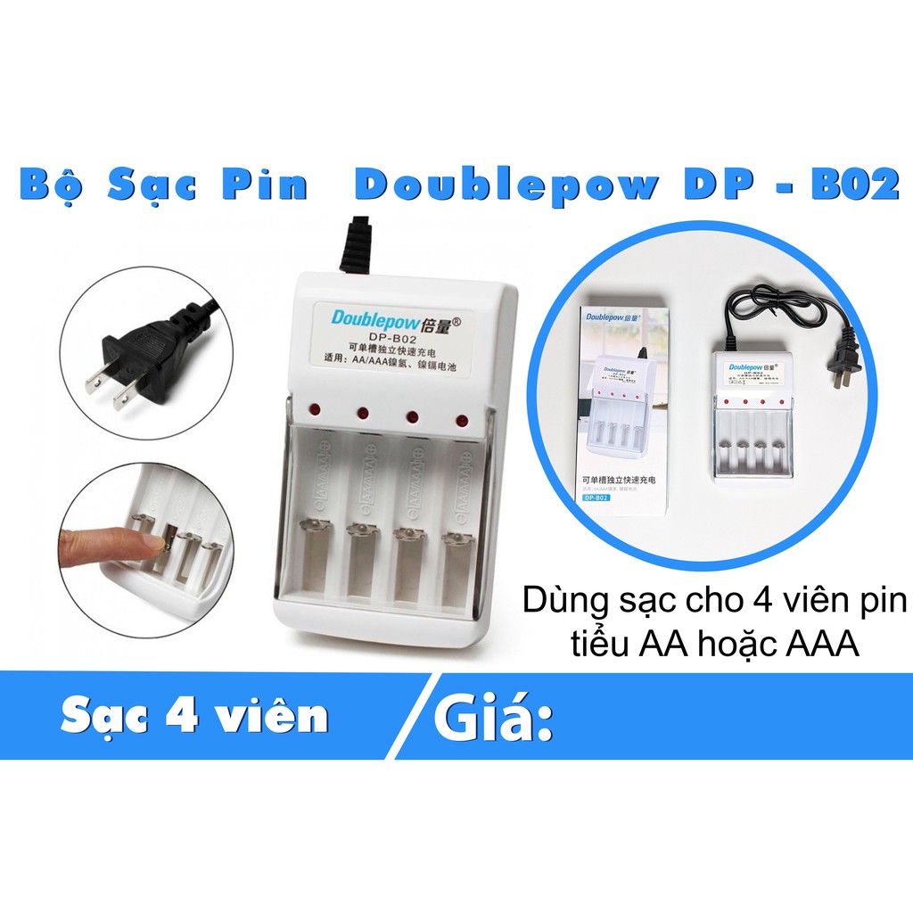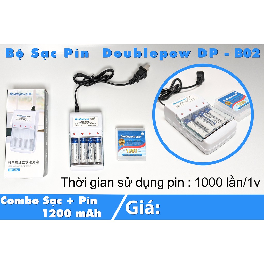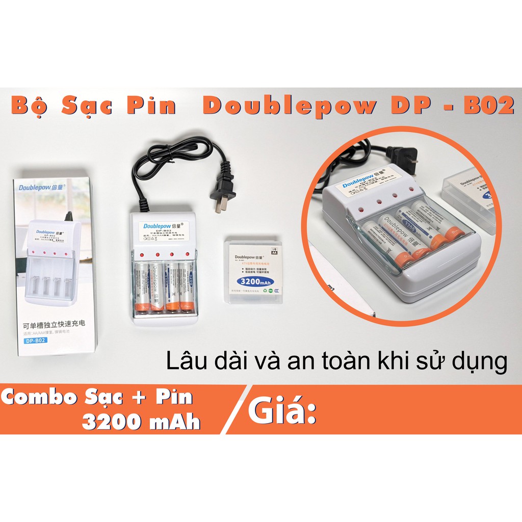 Combo 4 Pin sạc AA 3200mah và sạc đa năng Doublepow DP-B02 chính hãng, chất lượng: giá siêu tốt hàng nhập loại 1 - Bảo h
