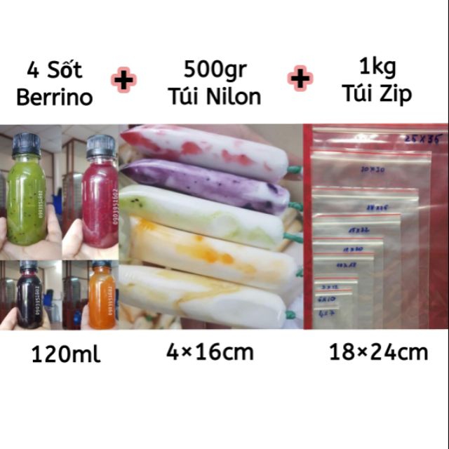 Combo 4 Sốt 120ml + 1kg Túi Zip 18×24cm + 500gr Túi nilon 4×16cm
