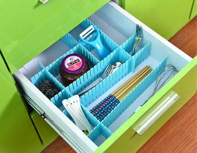 Tấm vách chia ngăn tủ. Ngăn tủ thường rất nhỏ, và khi để đồ thường bị lẫn vào nhau rất không ngăn nắp và khó tìm kiếm. Nhưng giờ đây, bạn có thể tự thiết kế các ngăn nhỏ hơn cho ngăn tủ của mình gọn gàng hơnTấm vách chia ngăn tủ