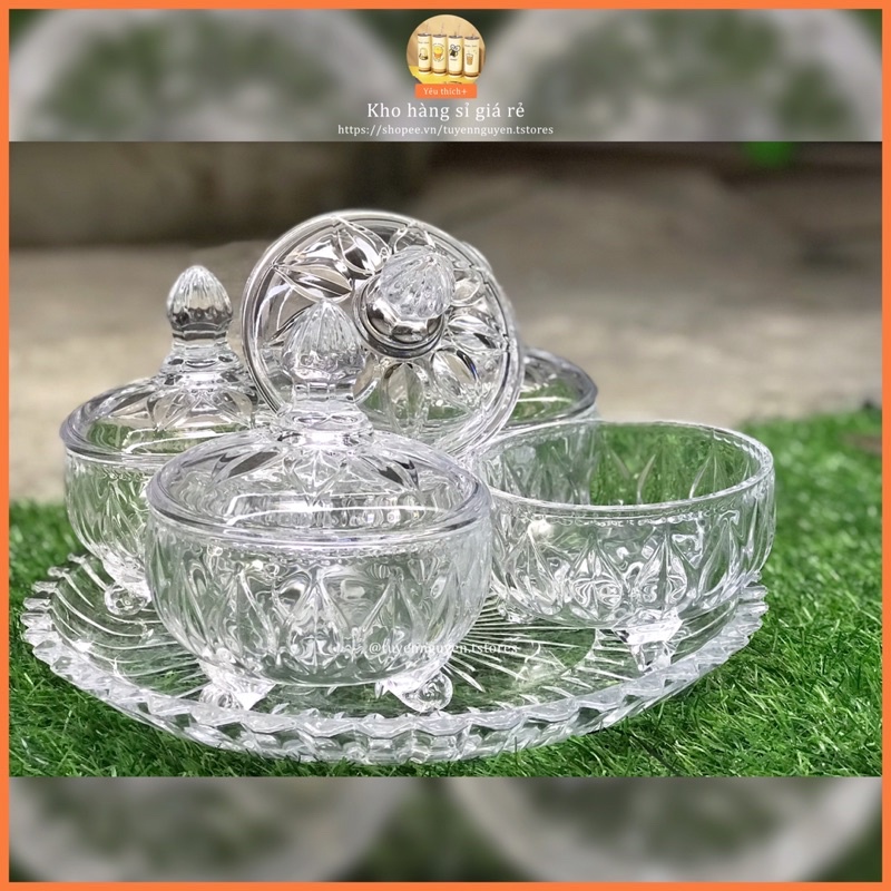 COMBO 4 thố mứt Tết Thuỷ Tinh+ Khay đựng cao cấp 704AB