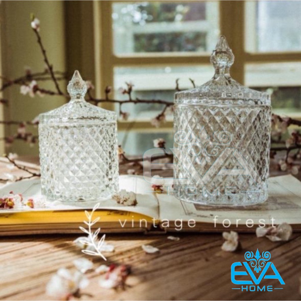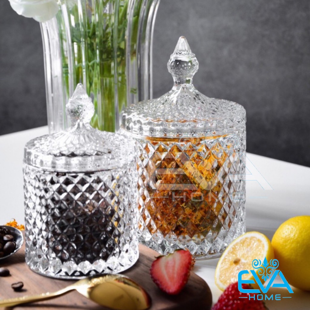 Combo 4 Thố Mứt Thuỷ Tinh Pha Lê Kim Cương Sang Trọng / Thố Mứt Tết Thố Bi Deli TG1030-3.5 M0996