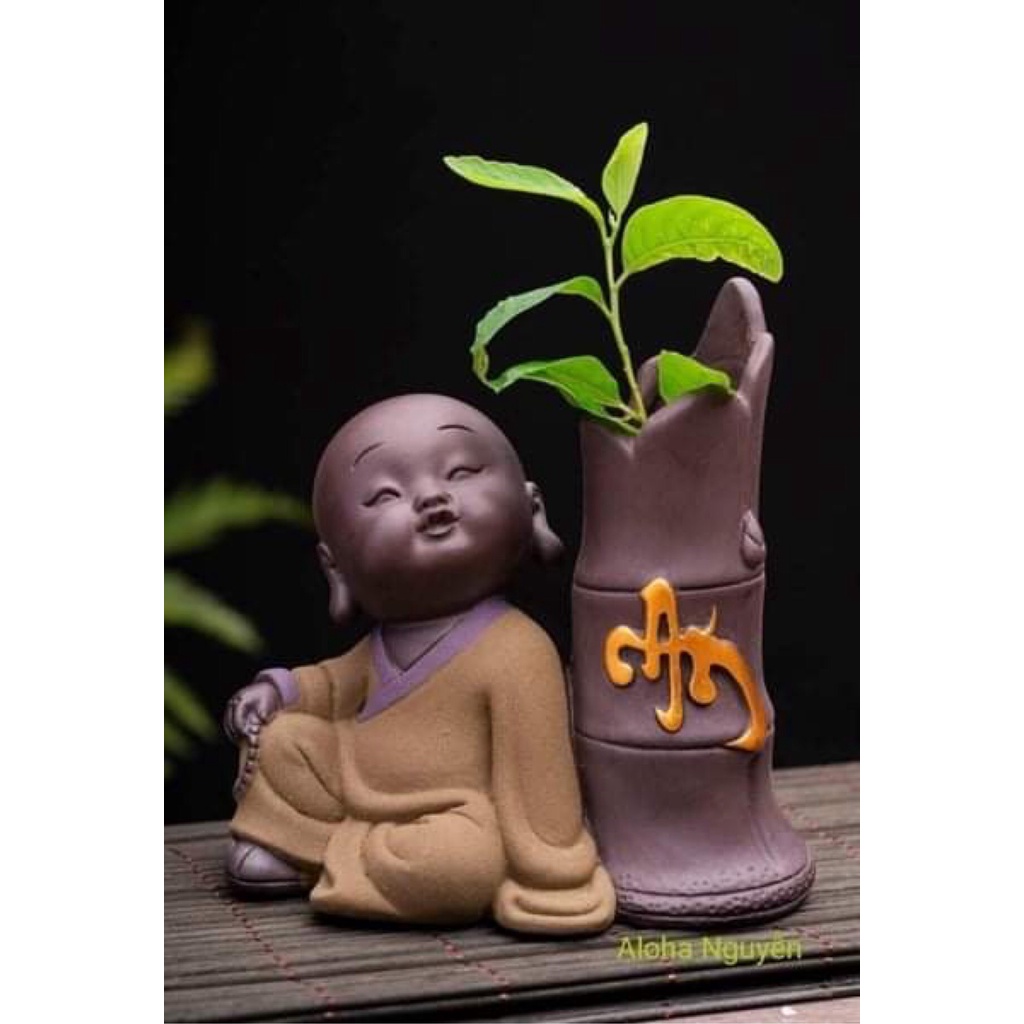 COMBO 4 tượng chú tiểu ôm chậu cây TÀI ĐỨC AN TÂM (hoặc tùy chọn),Trồng cây, cắm hoa trang trí, Quà tặng ý nghĩa