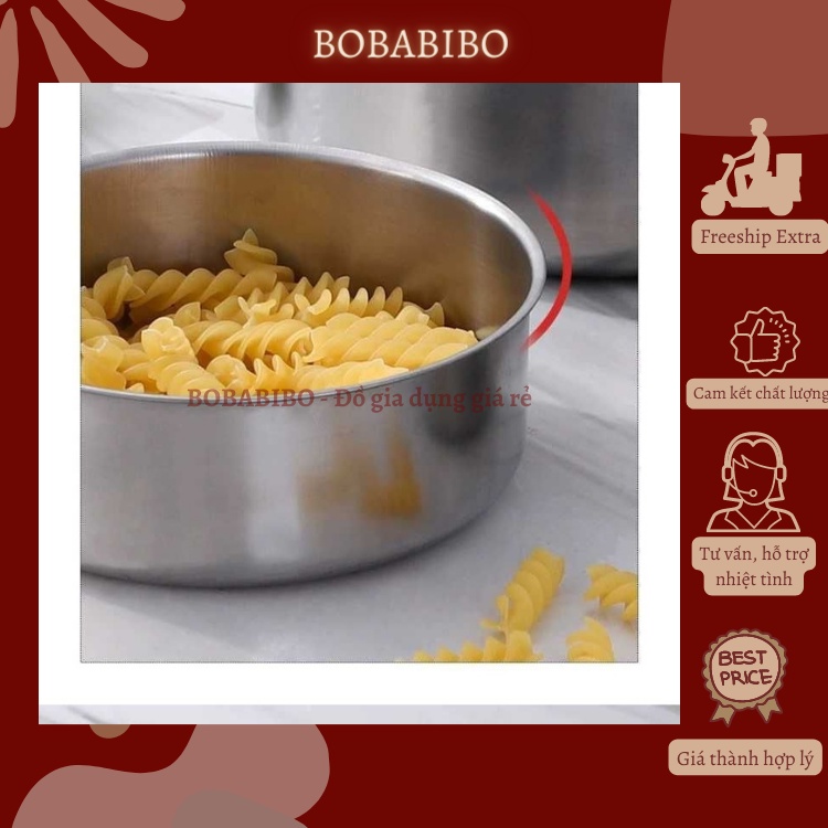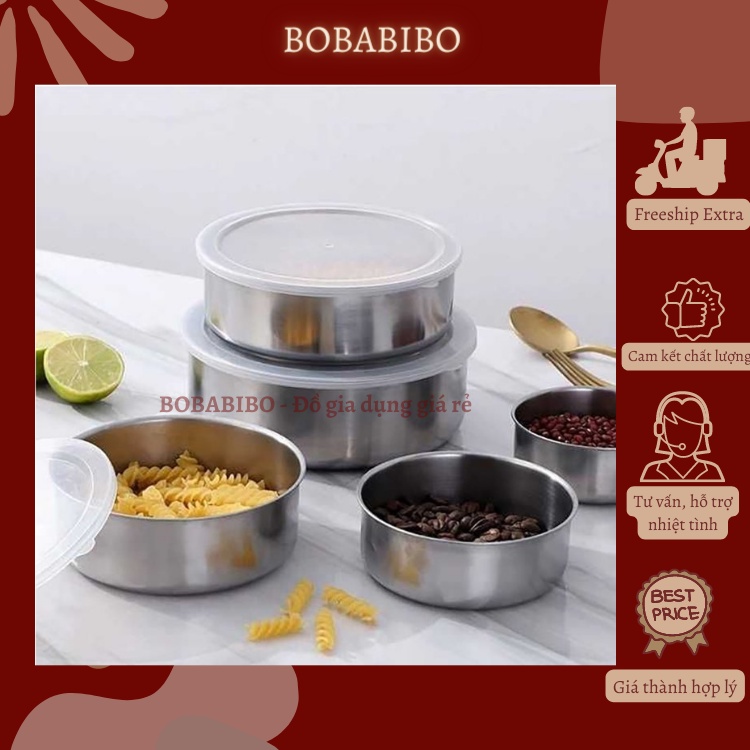 - Bộ 5 Thố Inox nhiều kích cỡ tiện dụng bộ 5 hộp inox với 5 kích cỡ: 10, 12, 14, 16, 18 cm cho bạn dễ dàng sử dụng, lựa chọn đơn giản để bảo quản các loại thức ăn khác nhau.