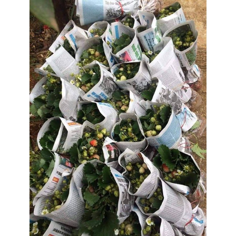 dâu tây bầu to khỏe nhiều quả rễ trồng và chăm sóc1 bầu từ 3-5 cây về sẵn thu quả