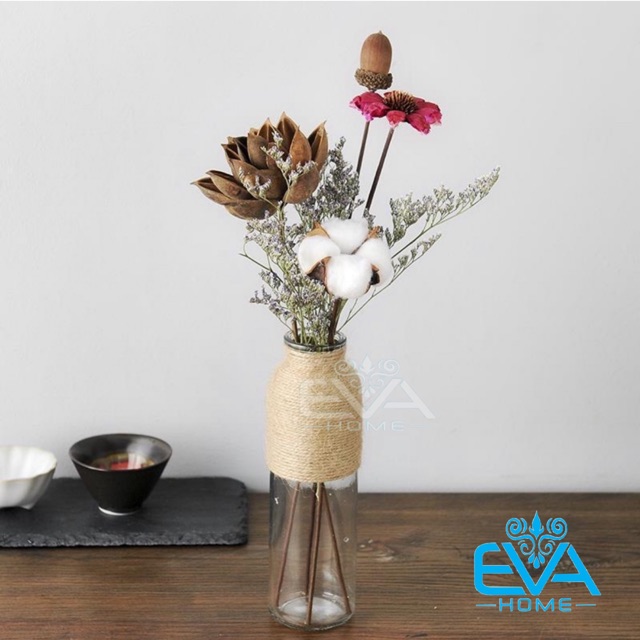 Combo 5 Bình Bông Lọ Hoa Thủy Tinh Tròn Vuông Lục Giác Tam Giác Tặng Kèm Dây Bố Trang Trí