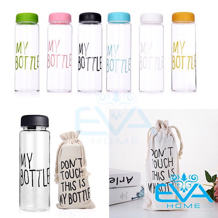 Combo 5 Bình Nước Thủy Tinh In Chữ Kèm Túi Vải Đựng My Bottle Nhiều Màu 500ml