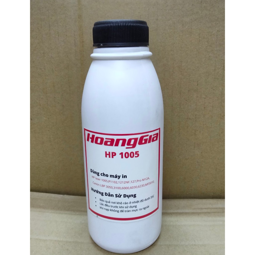 Tên gọi: Mực nạp máy in HP1005 - NGT1Tổng trọng lượng: 120g (TL mực 80g, TL vỏ chai: 40g)