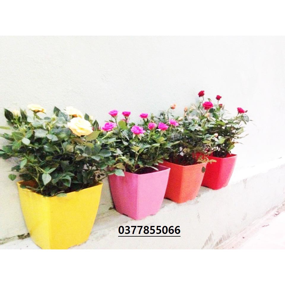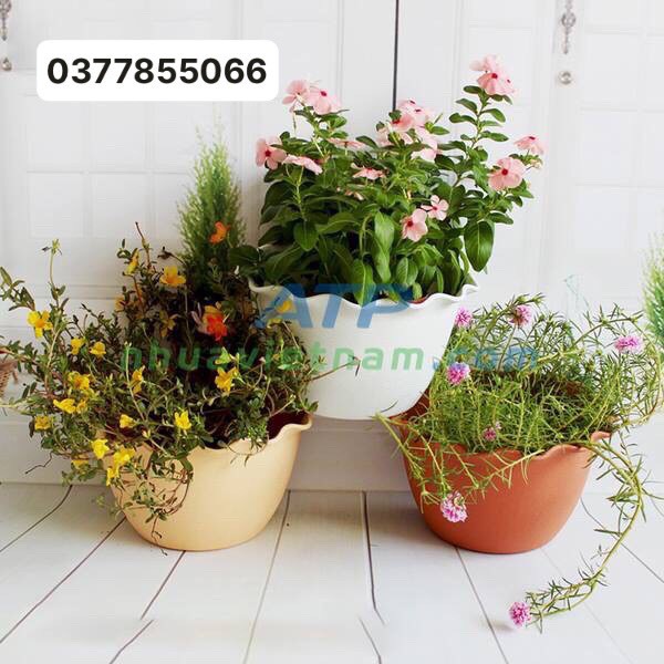 - Chậu bằng nhựa dày, dẻo dai, thích hợp trồng hoa, để lan can, trang trí nhà cửa