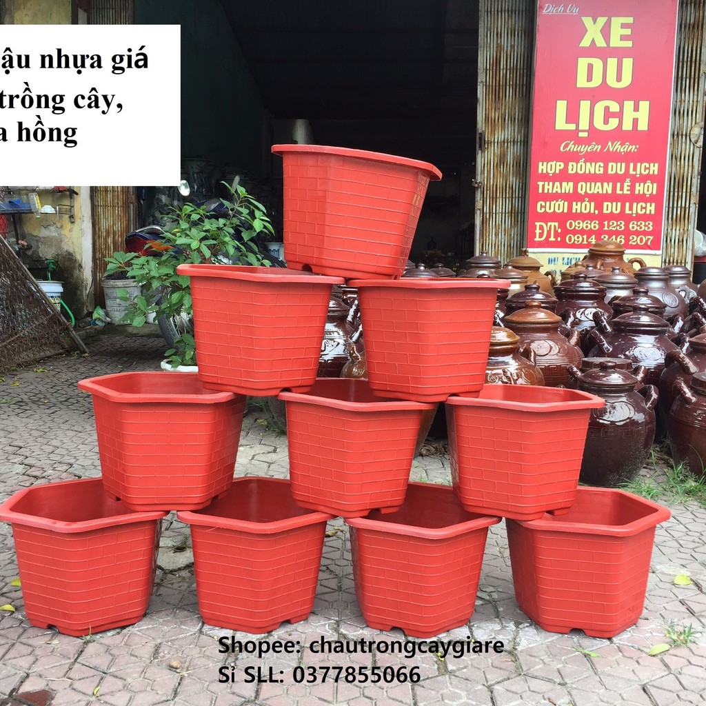 - Chậu được thiết kế vân gạch giả sành sứ nên rất bắt mắt, thẩm mỹ.