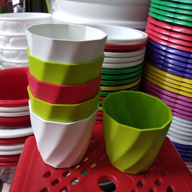 Chậu xoắn ốc bé có 3 màu sắc cho bạn lựa chọn: Màu xanh, màu trắng, màu đỏ.
