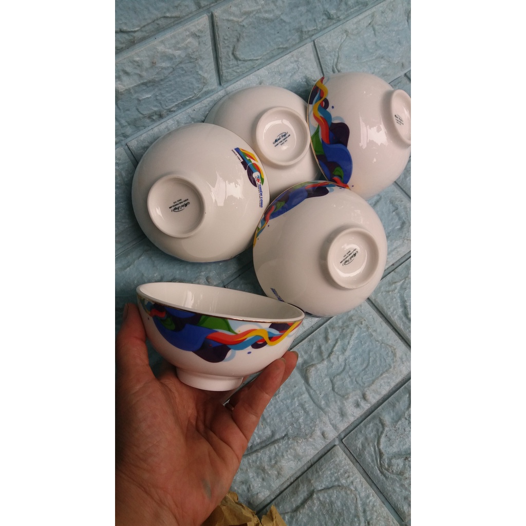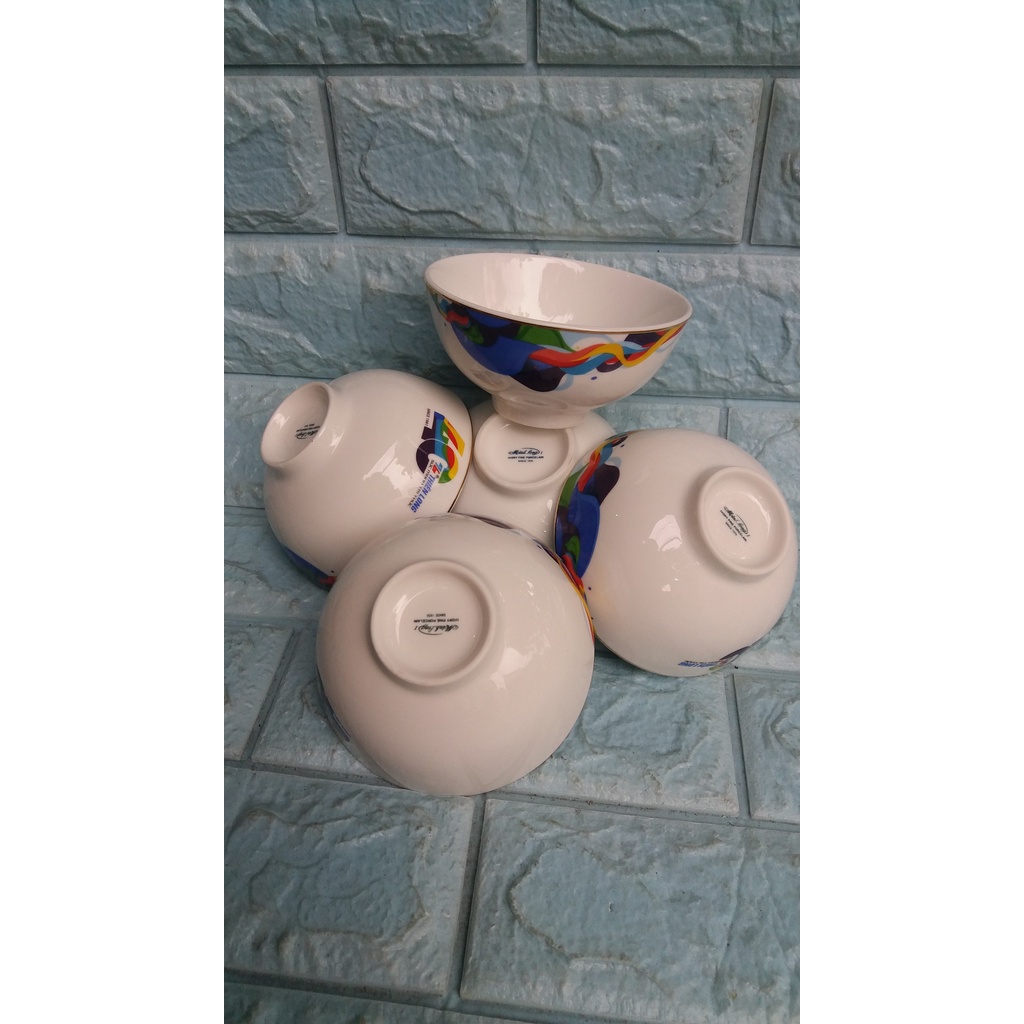 115 ngàn 5 cái chén ăn cơm Minh Long hoa văn, có viền vàng,