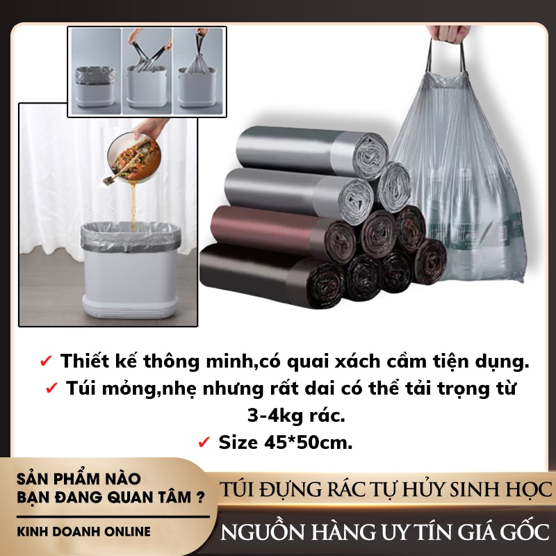 Nhà cửa & Đời sống > Dụng cụ chăm sóc nhà cửa > Túi nilon & túi rác || Combo 5 cuộn túi đựng rác tự phân huỷ có dây rút | Size 45x50 cm ,15 túi/cuộn - Tiện dụng sạch sẽ thông minhCòn hàng