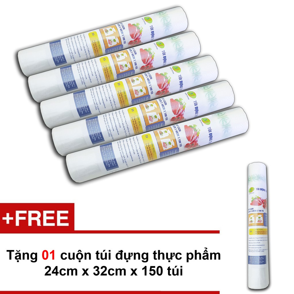 Combo 5 cuộn túi đựng thực phẩm TỰ HỦY SINH HỌC MINHTHANH 24cm x 32cm x 150 túi TẶNG 1 cuộn cùng loại