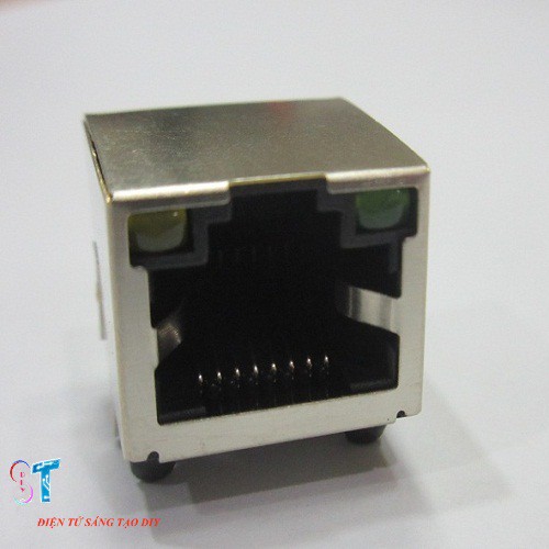 Đầu Cổng RJ45 Đơn Cái 8 Chân hay còn gọi là socket mạng, ổ cắm mạng với chân hàn 90 độ để hàn nối với các thiết bị kết nối mạng (cổng RJ45) với 2 đèn led xanh, vàng báo tín hiệu mạng.Thiết kế vỏ bọc kim loại giúp thiết bị được bảo vệ chắc chắn hơn