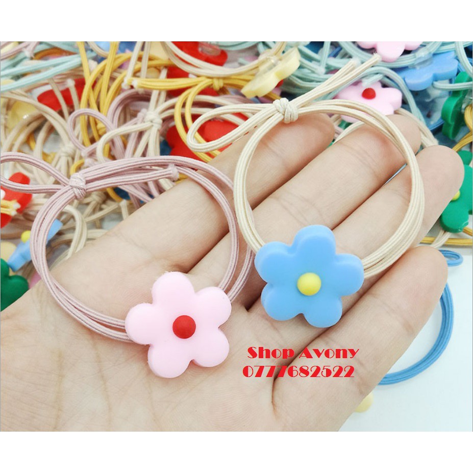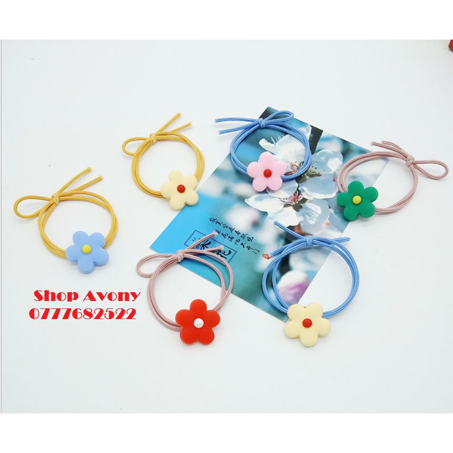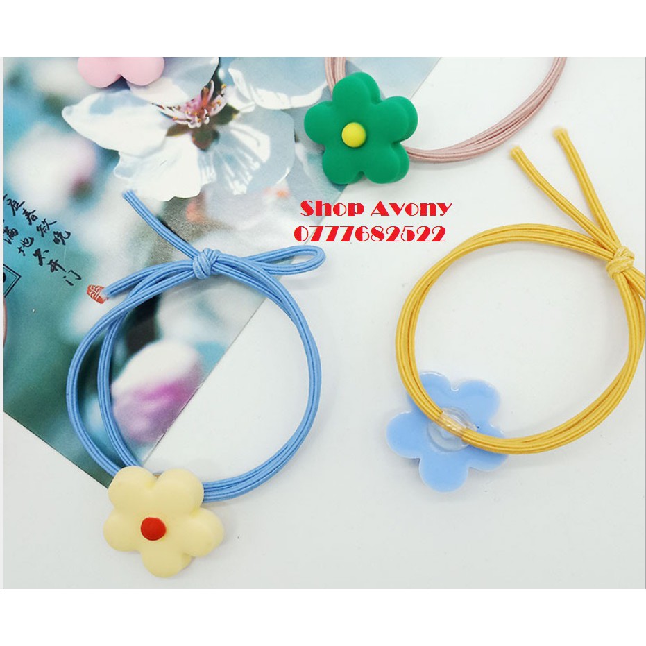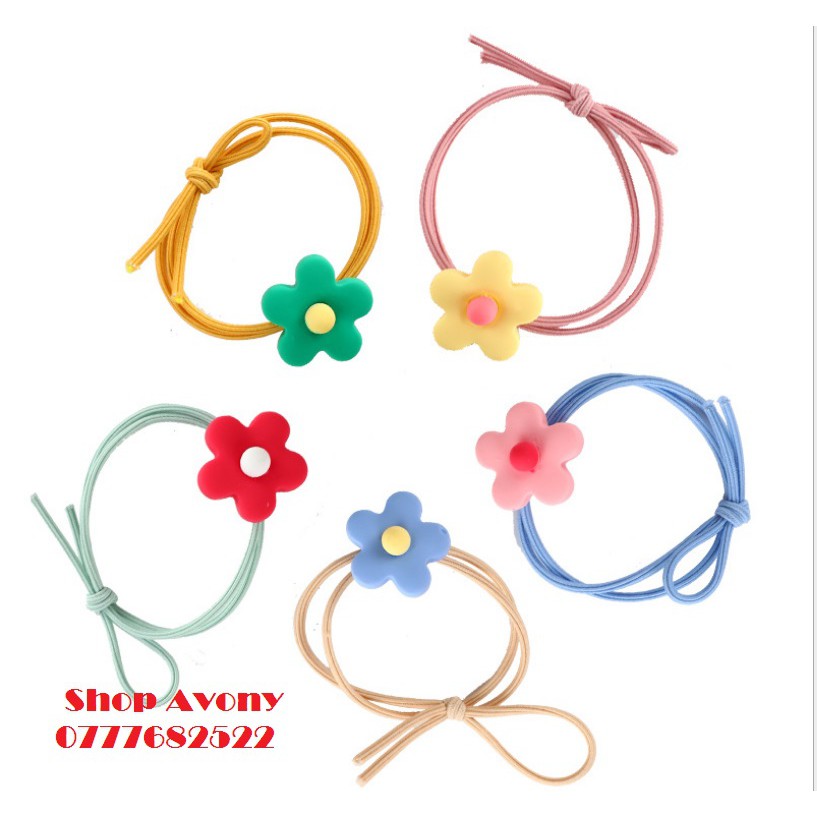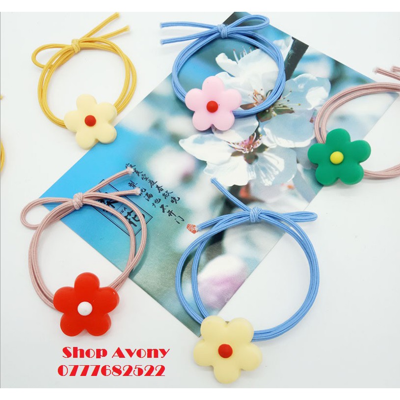 - Combo gồm 5 dây cột tóc hoa màu nhám giá 40k- combo giao đủ màu hoa