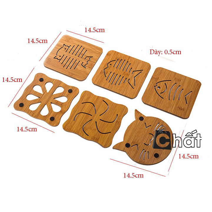 - Bộ sản phẩm gồm: 5 miếng lót nồi bằng gỗ hình ngẫu nhiên