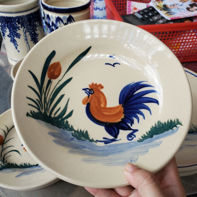 Dĩa đá xưa. Mẫu con gà vẽ tay nguyên con gà trống. Hàng gốm đá xưa cao cấp, láng mịn, chén dày nặng tay.Combo 5 Dĩa siêu xinh chỉ 180k