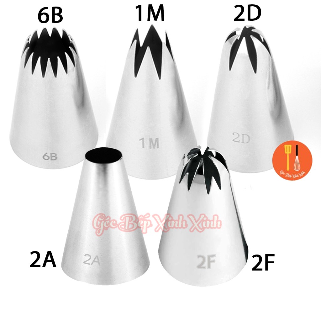 Nhà cửa & Đời sống > Dụng cụ nhà bếp > Dụng cụ nướng & trang trí bánh || Combo 5 đui bắt kem ( đuôi bắt kem ) cao cấp 2D, 2A , 2F , 6B , 1MCòn hàng