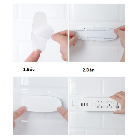 Cách sử dụng: gồm 2 phần, một phần dán lên ổ cắm điện, một phần dán lên tường. Sau đó bạn gắn 2 phần lại với nhau để cố định ổ cắm điện lên tường.