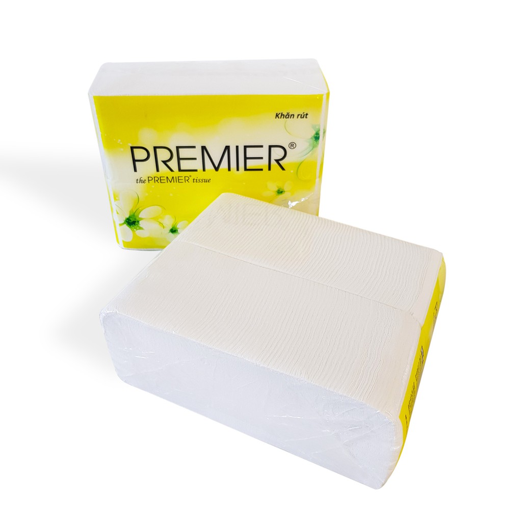 Khăn giấy rút Premier được sản xuất trên dây chuyền hiện đại, giấy 100% bột nguyên chất, trắng, mịn, dai thích hợp cho bàn ăn gia đình, hệ thống nhà hàng, khách sạn
