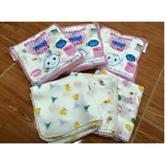 Khăn xô xuất Nhật 32x32cm (10 chiếc)Khăn sữa, khăn xô xuất Nhật Bản được làm từ chất liệu 100% cotton rất mềm mại và an toàn cho sức khỏe của bé. Sản phẩm có nhiều hình ngộ nghĩnh trông rất là yêu, chất mềm mại dùng rất thích, các mẹ ở Nhật Bản dùng loại khăn sữa này rất vệ sinh và an toàn cho làn da nhạy cảm của bé.