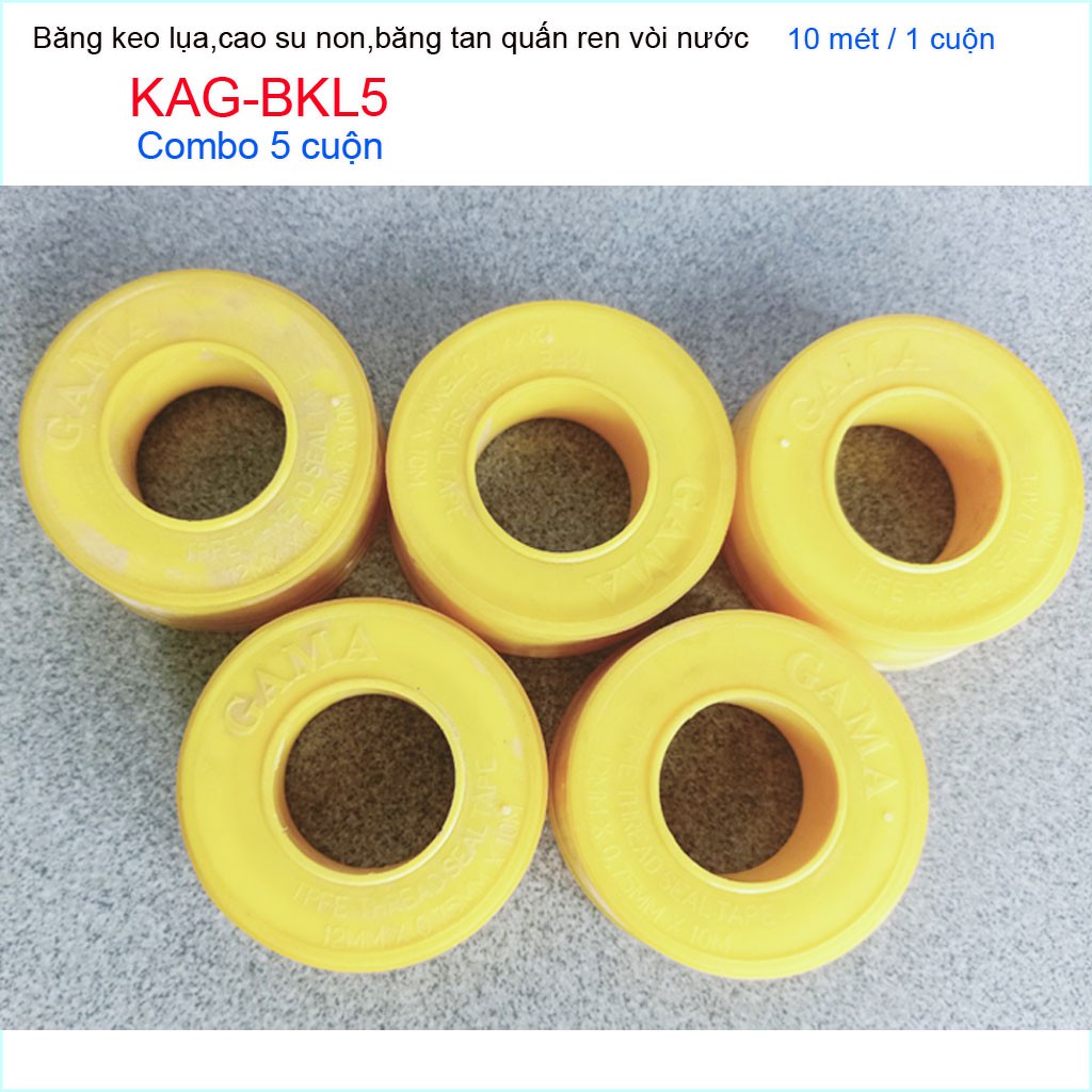 Giới thiệu Combo 5 hộp băng keo lụa 10m, 5 cuộn cao su non 10 meters quấn ống nước KAG-BKL5