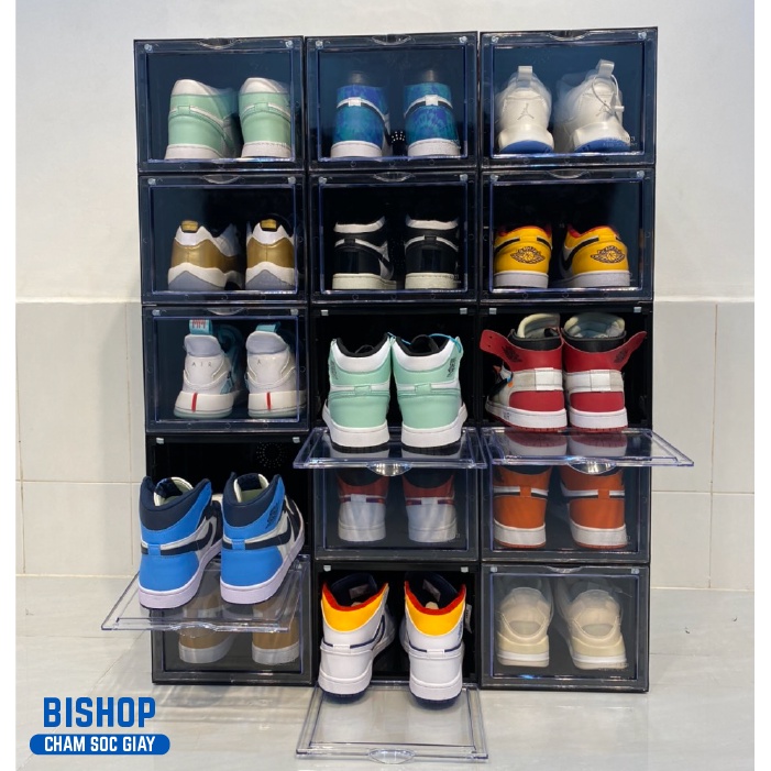 1. Hộp đựng giày bằng nhựa cao cấp, dày và cứng cáp, đảm bảo tốt nhất thị trường hiện tại.