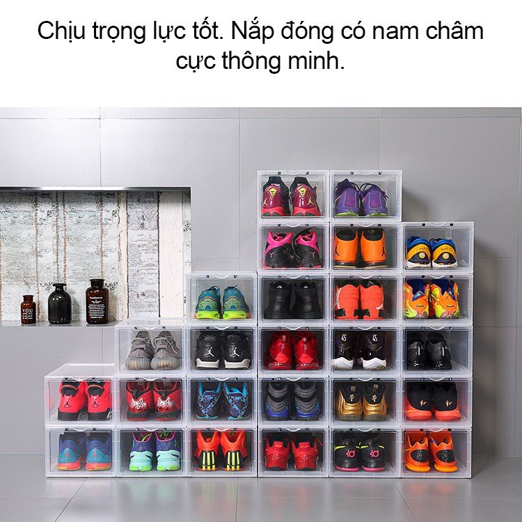 Hộp Đựng Giày Xịn, Hộp Đựng Sneaker Nhựa Cứng Nắp Nam Châm:- Chất liệu nhựa cứng siêu nhẹ,lắp ghép dễ dàng di chuyển