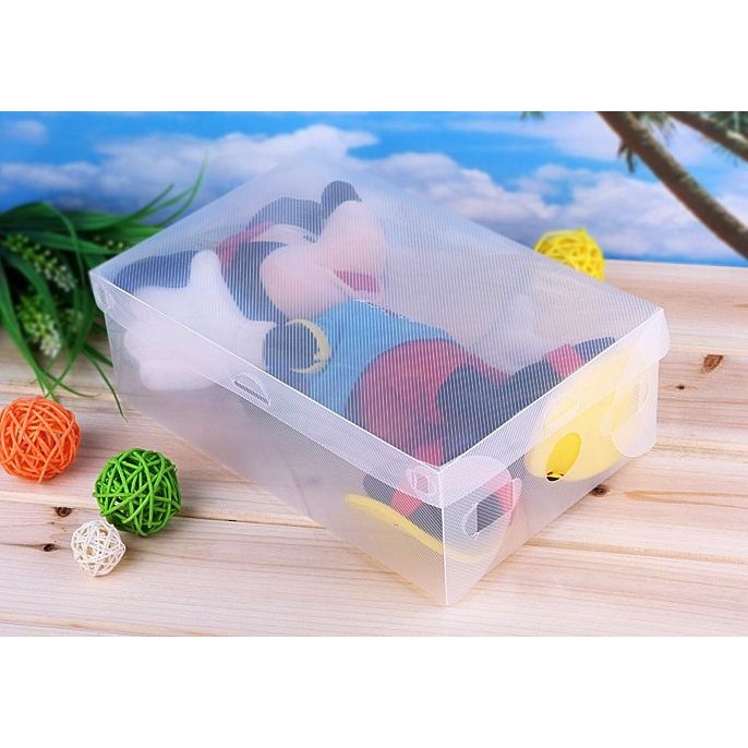 -Hộp đựng giày trong suốt tiện dụng cho bạn sắp xếp những đôi giày gọn gàng, sau đó có thể xếp lại lên kệ, giá để giày hoặc dưới sàn nhà một cách khoa học.-Sản phẩm được làm bằng nhựa trong suốt cho bạn có thể nhìn rõ từng đôi giày bên trong và dễ dàng tìm kiếm khi cần thiết.