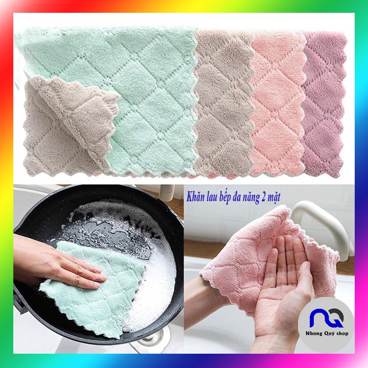 - Khăn Lau Bếp Đa Năng 2 Mặt không phai màu, không rụng sợi, thiết kế đẹp và hiện đại.