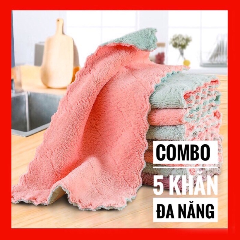 Combo 5 khăn lau bếp đa năng 2 mặt siêu thấm - khăn lau đa năng siêu thấm