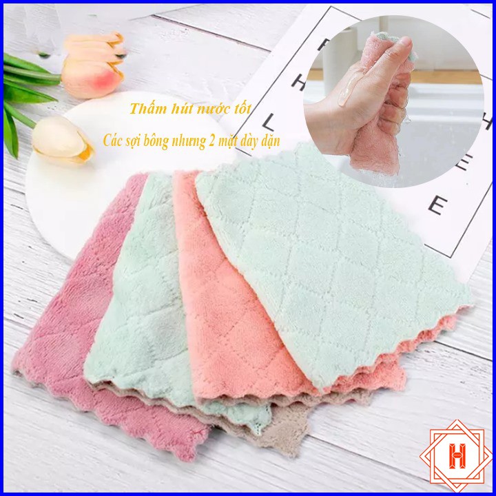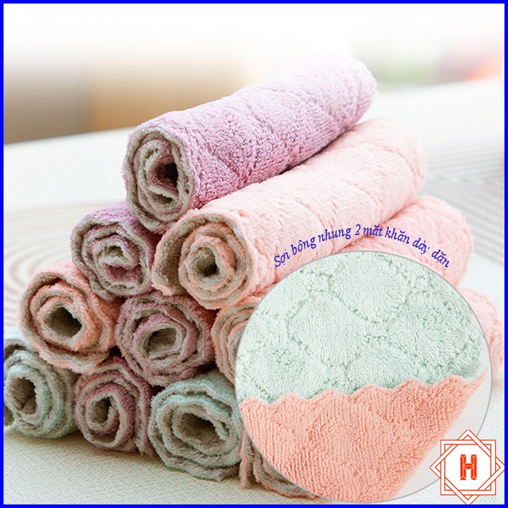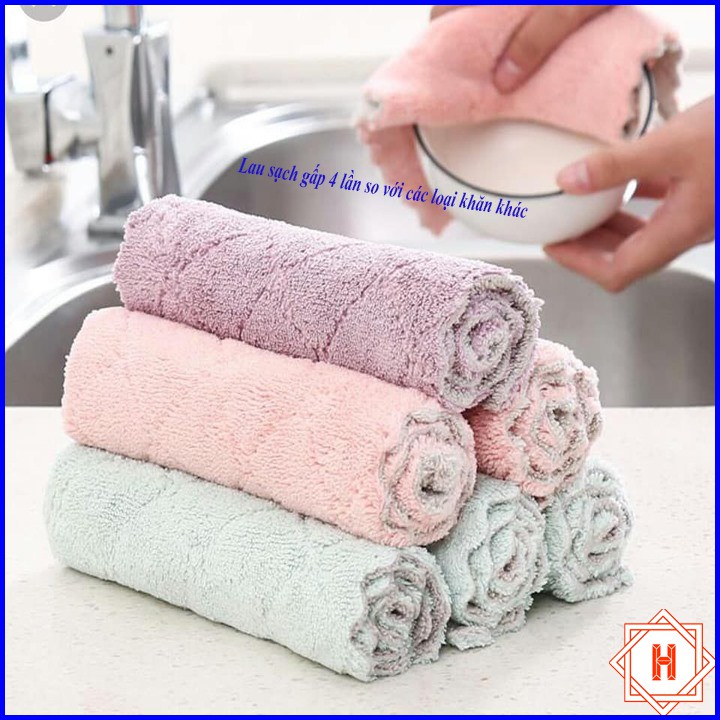 - Khăn Lau Bếp Đa Năng 2 Mặt thấm hút nước tốt so với các loại khăn khác do 2 mặt khăn thiết kế các sợi bông nhung dày dặn.