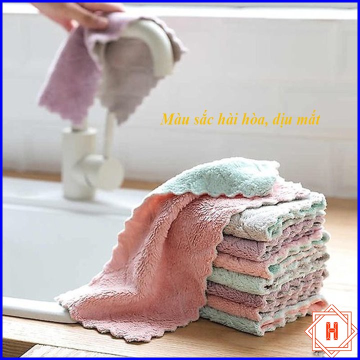 Combo 5 Khăn Lau Bếp Đa Năng 2 Mặt Sợi Bông Mềm Không Trầy Xước { H }
