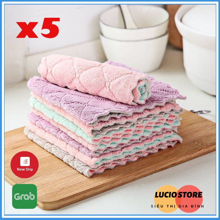 Combo 5 Khăn lau đa năng (lau bếp, bát đĩa, bàn ghế...) 2 mặt siêu mềm mịn, thấm hút tốt,kháng khuẩn (1chiếc)