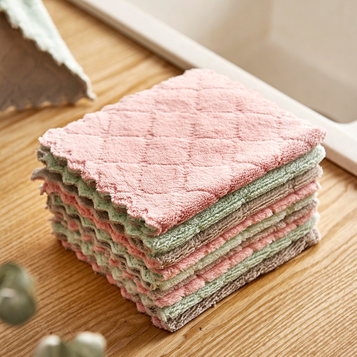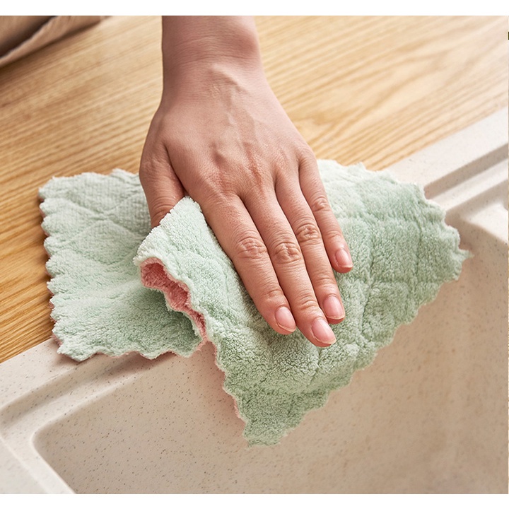 Nhà cửa & Đời sống > Dụng cụ chăm sóc nhà cửa > Khăn vệ sinh || Combo 5 Khăn lau đa năng (lau bếp, bát đĩa, bàn ghế...) 2 mặt siêu mềm mịn, thấm hút tốt,kháng khuẩnCòn hàng