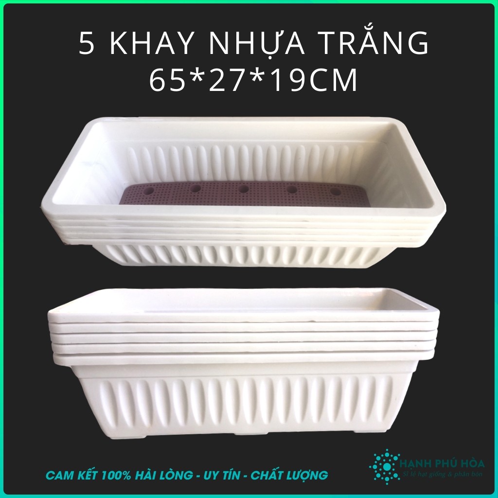 Combo bao gồm 5 khay trắng bắt mắt xinh xắn có kích thước 65*27*19cm cm thích hợp để trồng các loại rau mầm