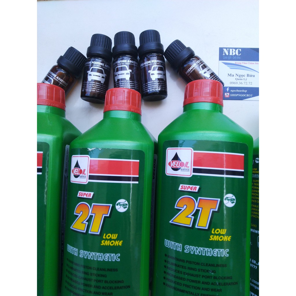 Bộ combo ( 5 lọ nhớt + 5 lọ tinh dầu) dành cho xe 2 thì cao cấp.Nhớt VELOIL 2T là Dầu nhớt động cơ cho xe máy 2 thì, sản xuất và nhập khẩu từ Thái Lan, được thiết kế để bảo vệ động cơ chống lại sự tích tụ cặn và chống kẹt pít-tông. Giữ cho động cơ xe luôn sạch.