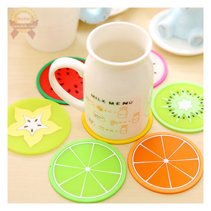 Nhà cửa & Đời sống > Bộ đồ bàn ăn > Khay, tấm lót bàn ăn || Combo 5 lót cốc silicon hình hoa quả chống trơn trượt ly tách trà cà phêCòn hàng