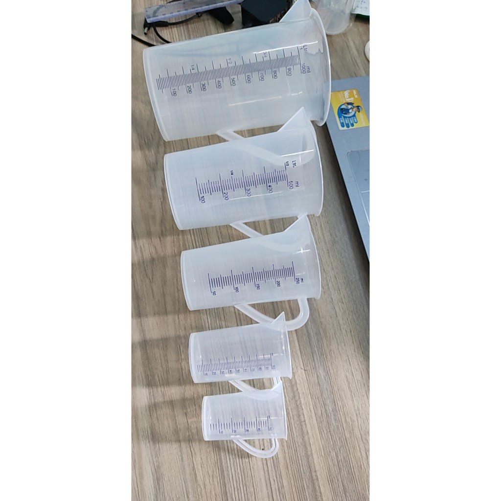 Giới thiệu COMBO 5 LY ĐONG LƯỜNG NGUYÊN LIỆU CAO CẤP 1000 ml / 500 ml /250 ml / 100 ml / 50 ML