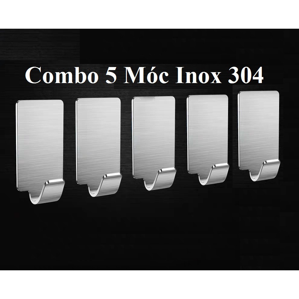 Combo gồm 5 Móc Inox SUS304Sử dụng keo 3M siêu dính