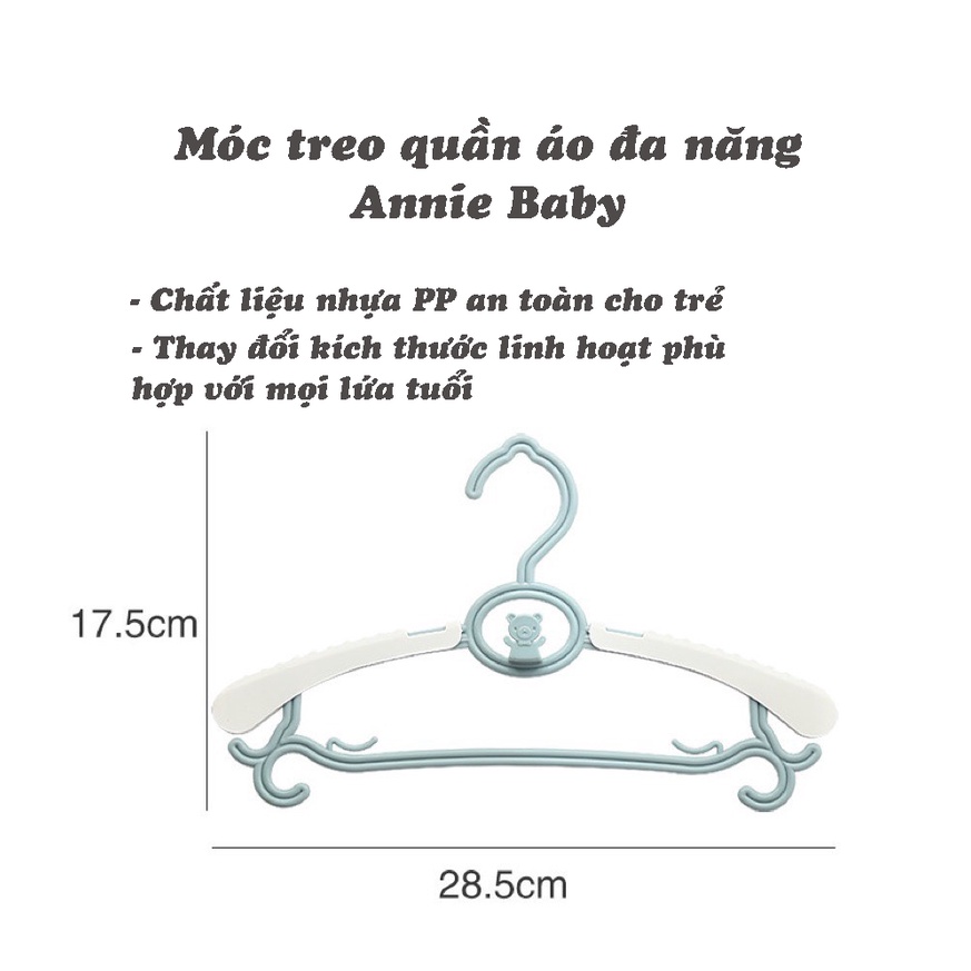 Combo 5 móc treo quần áo thông minh Annie Baby, móc sơ sinh đa năng bằng nhựa an toàn cho da bé
