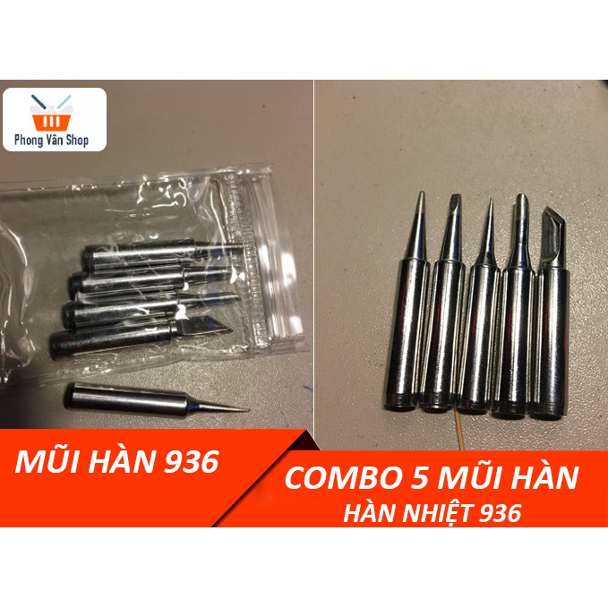 Combo 5 mũi hàn nhiệt 936Bộ combo bao gồm 5 mũi hàn giống như trên ảnh sản phẩm