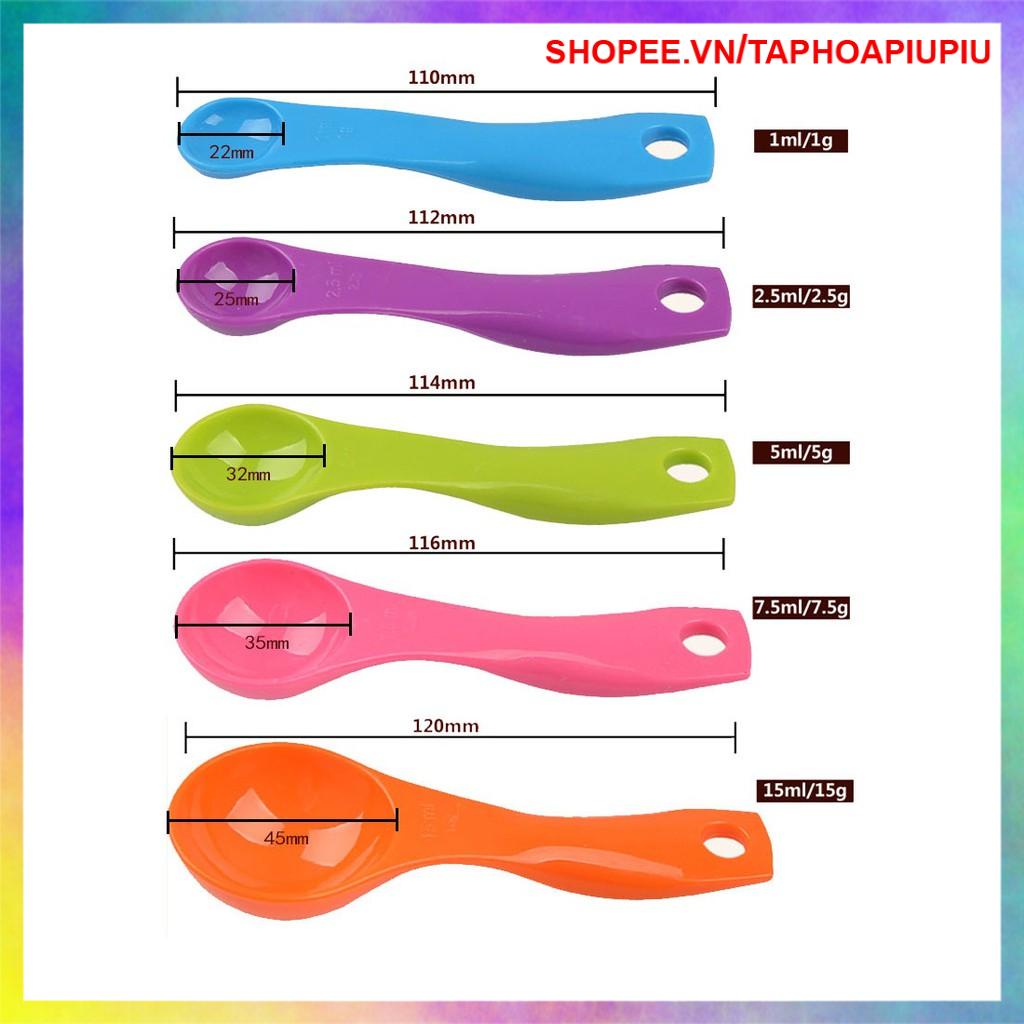 **** Hãy theo dõi TAPHOAPIUPIU để nhận thêm VOCHER giảm giá bạn nhé ****-Bộ sản phẩm gồm 05 muỗng có dung tích khách nhau: từ 5 đến 15ml, được xỏ xâu tương tự móc khóa, tiện dụng và hữu ích vô cùng.