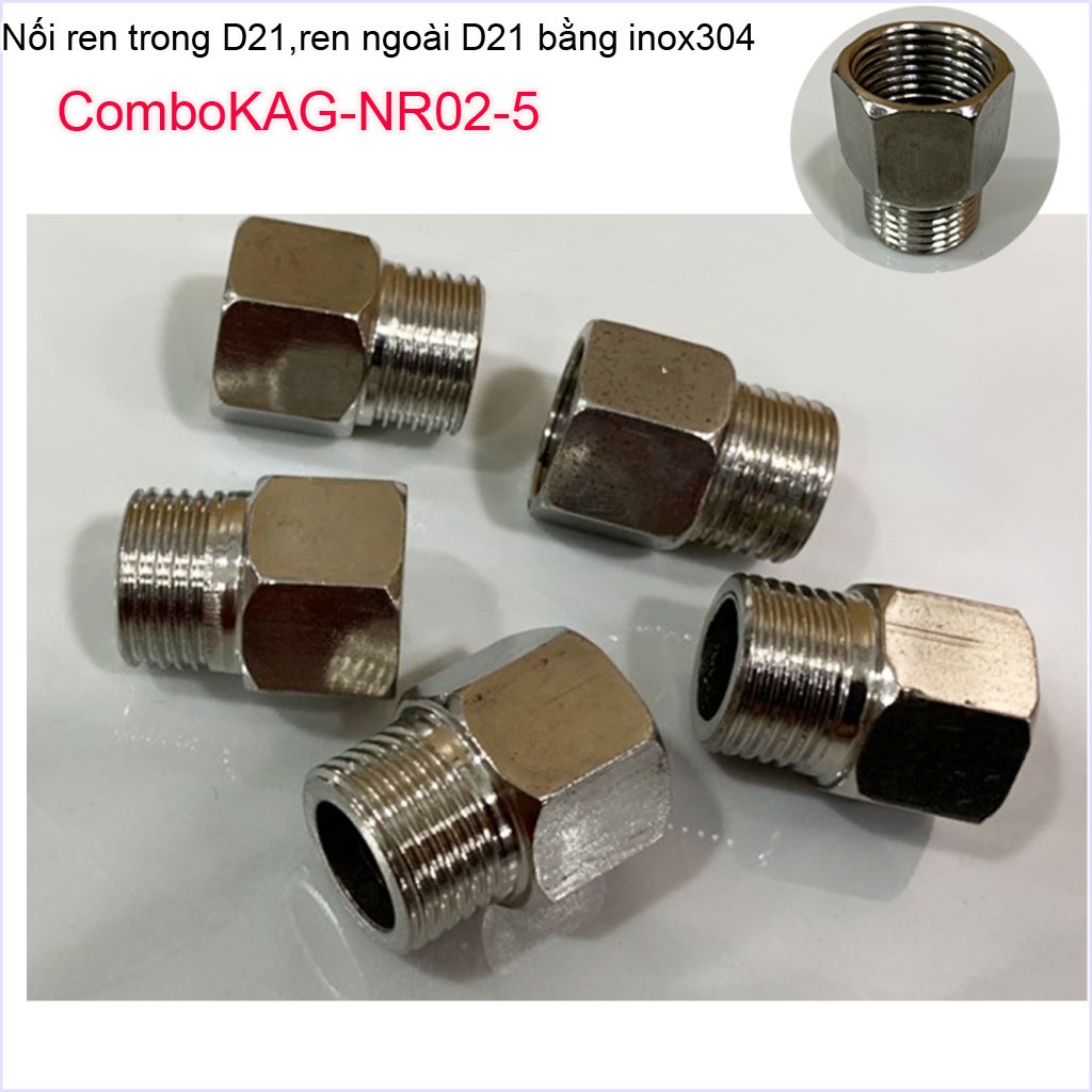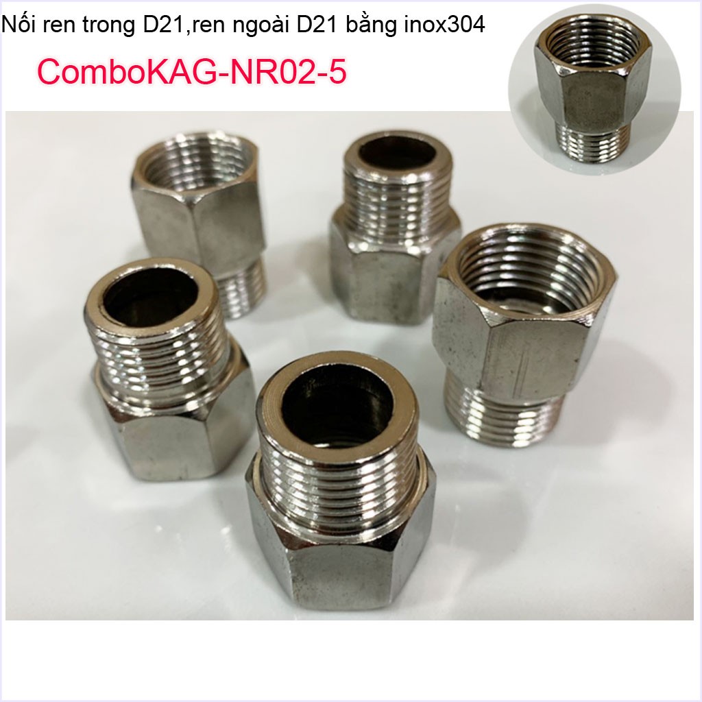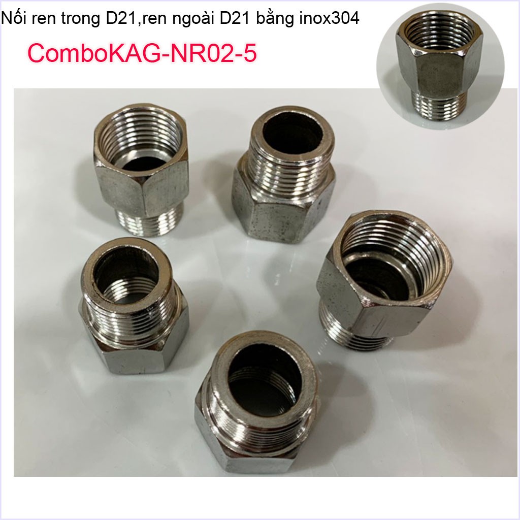 Combo 5 Nối ren trong ren ngoài D21 Nixcor KAG-NR01+5 , Đầu nối đổi ren KAG-NR02+5- Phụ kiện đổi ren Inox-Đồng (cà Rá)