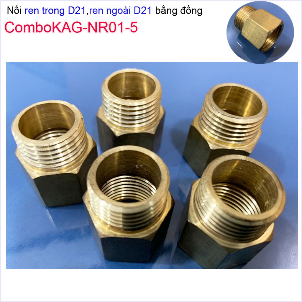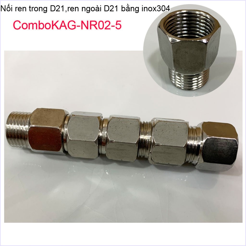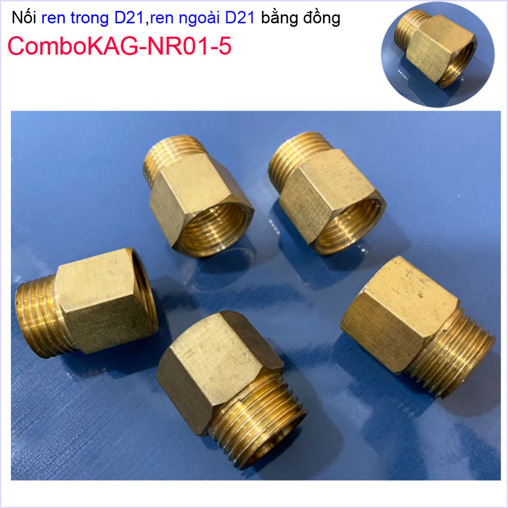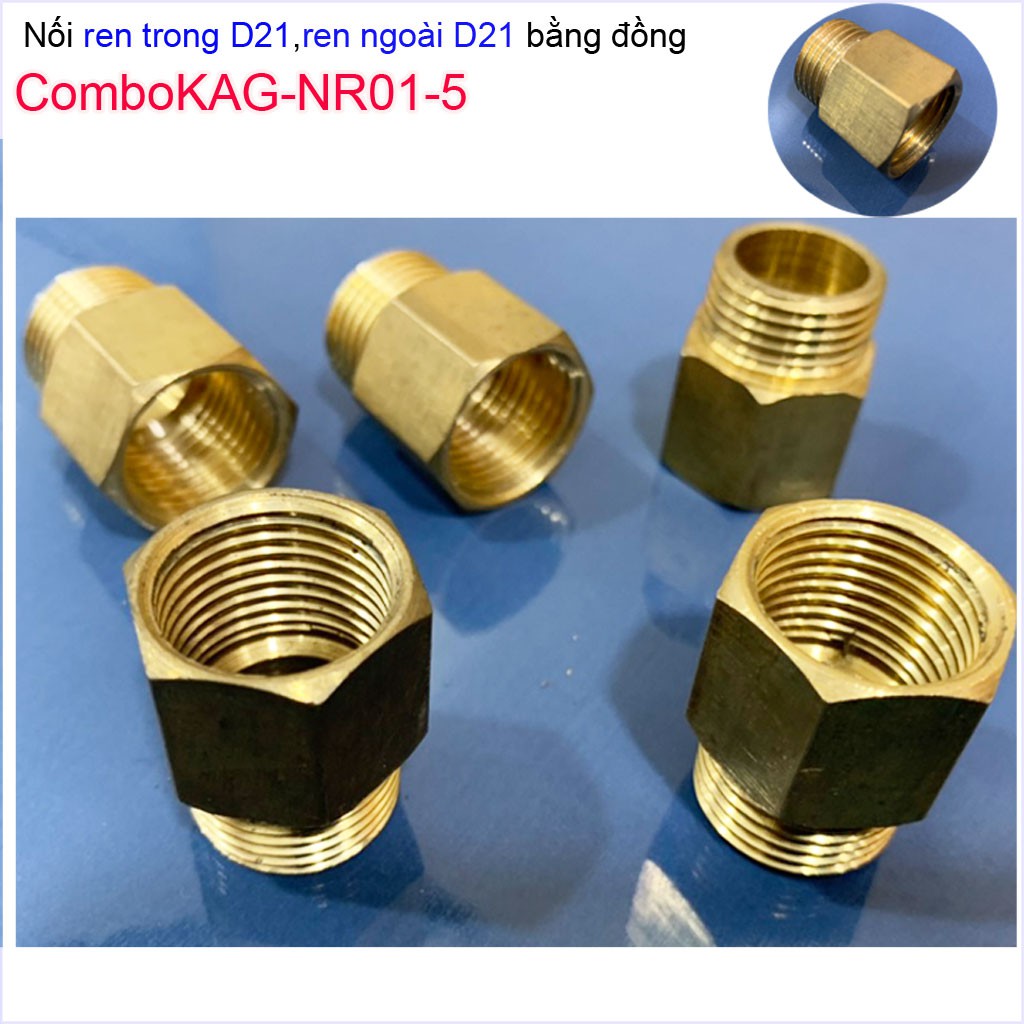 Combo 5 Nối ren trong ren ngoài D21 Nixcor KAG-NR01+5 , Đầu nối đổi ren KAG-NR02+5- Phụ kiện đổi ren Inox-Đồng (cà Rá)