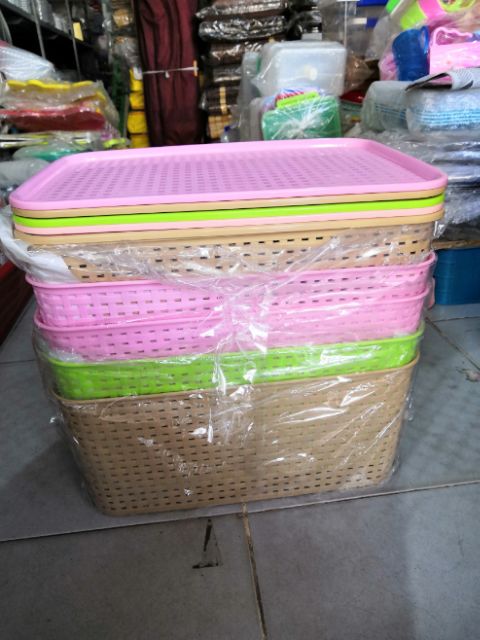Nhà cửa & Đời sống > Dụng cụ chăm sóc nhà cửa > Chậu, xô & gáo nước || Combo 5 rổ vuông nắp size trungCòn hàng