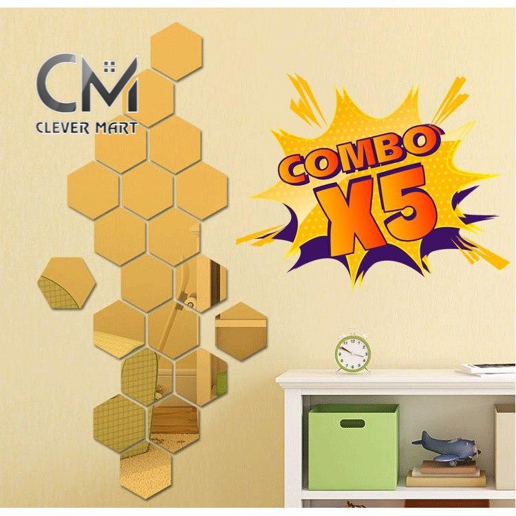 Giới thiệu Combo 5 Set 12 Miếng Dán Tường Tráng Gương Hình Lục Giác 4x4 Chống Thấm Nước