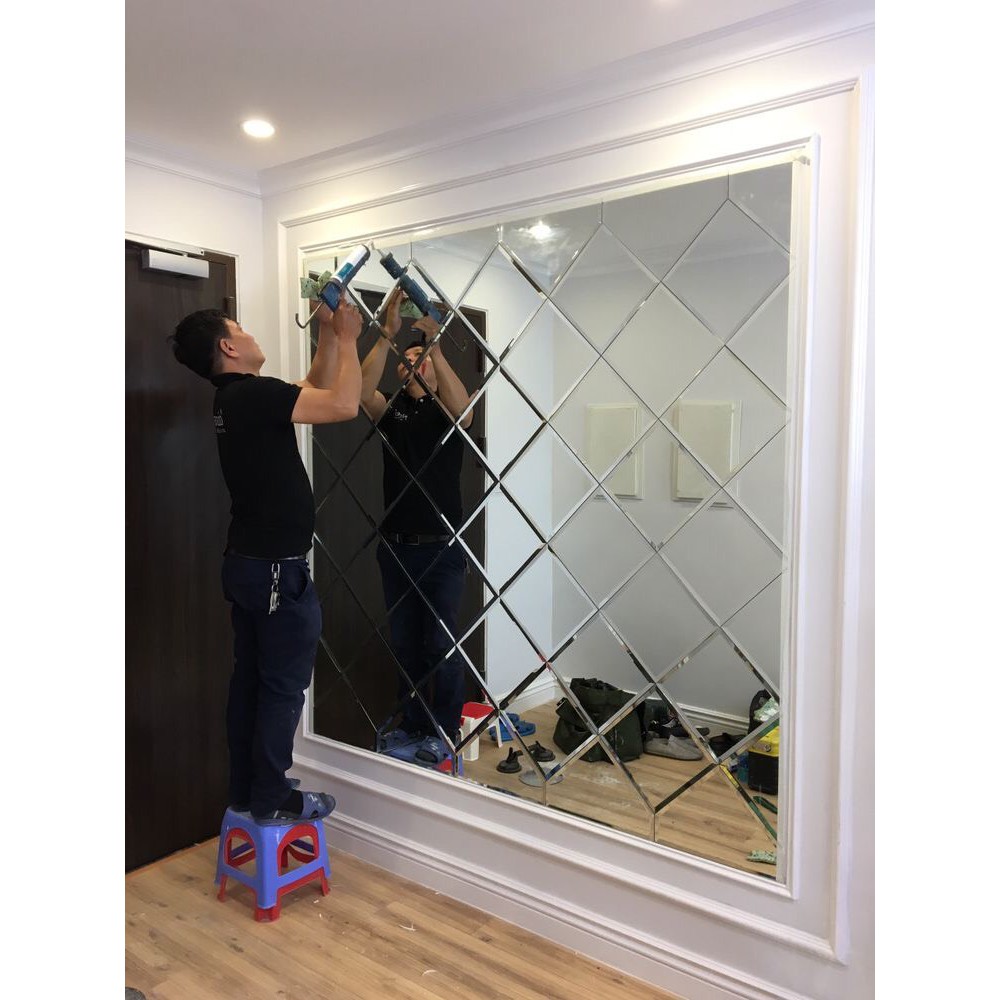 - Cẩn thận sắp xếp các mảnh gương sao cho các mép gương khít với nhau để tăng thẩm mỹ